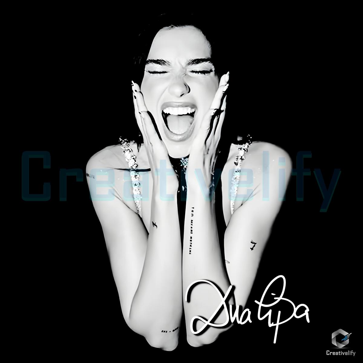 Digital Download Details for Dua Lipa Screaming Black And White Portrait Signature Style Png: Unleash Your Creativity