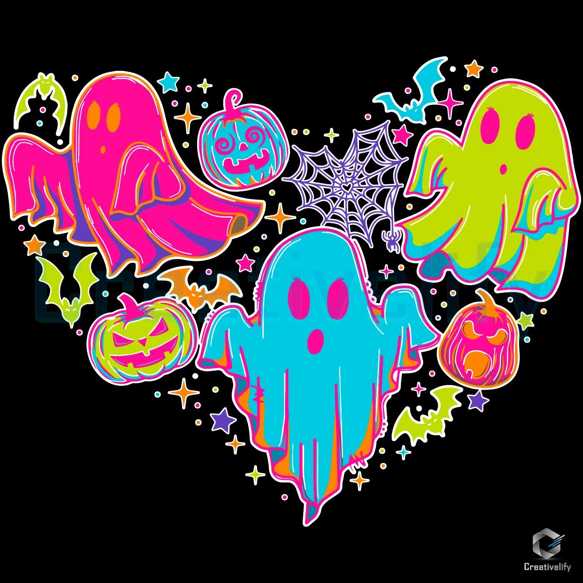 Digital Download Details for Neon Ghost Heart Halloween Cute Boo Pumpkin Fall Design Svg: Unleash Your Creativity