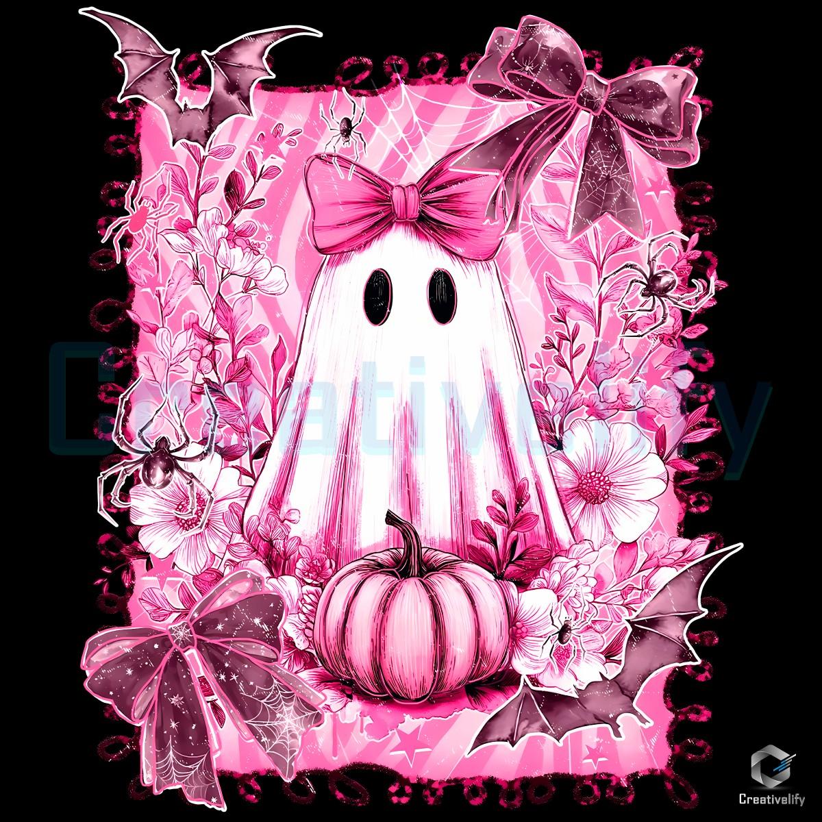 Digital Download Details for Pink Floral Ghost Pumpkin Coquette Halloween Png: Unleash Your Creativity