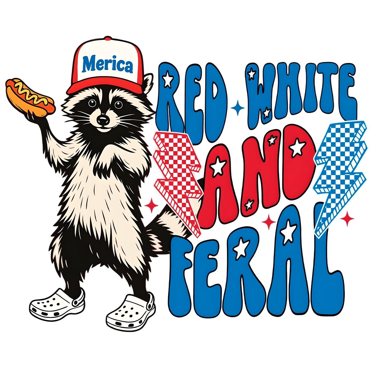 Digital Download Details for Red White And Feral Funny Raccoon Merica Png: Unleash Your Creativity