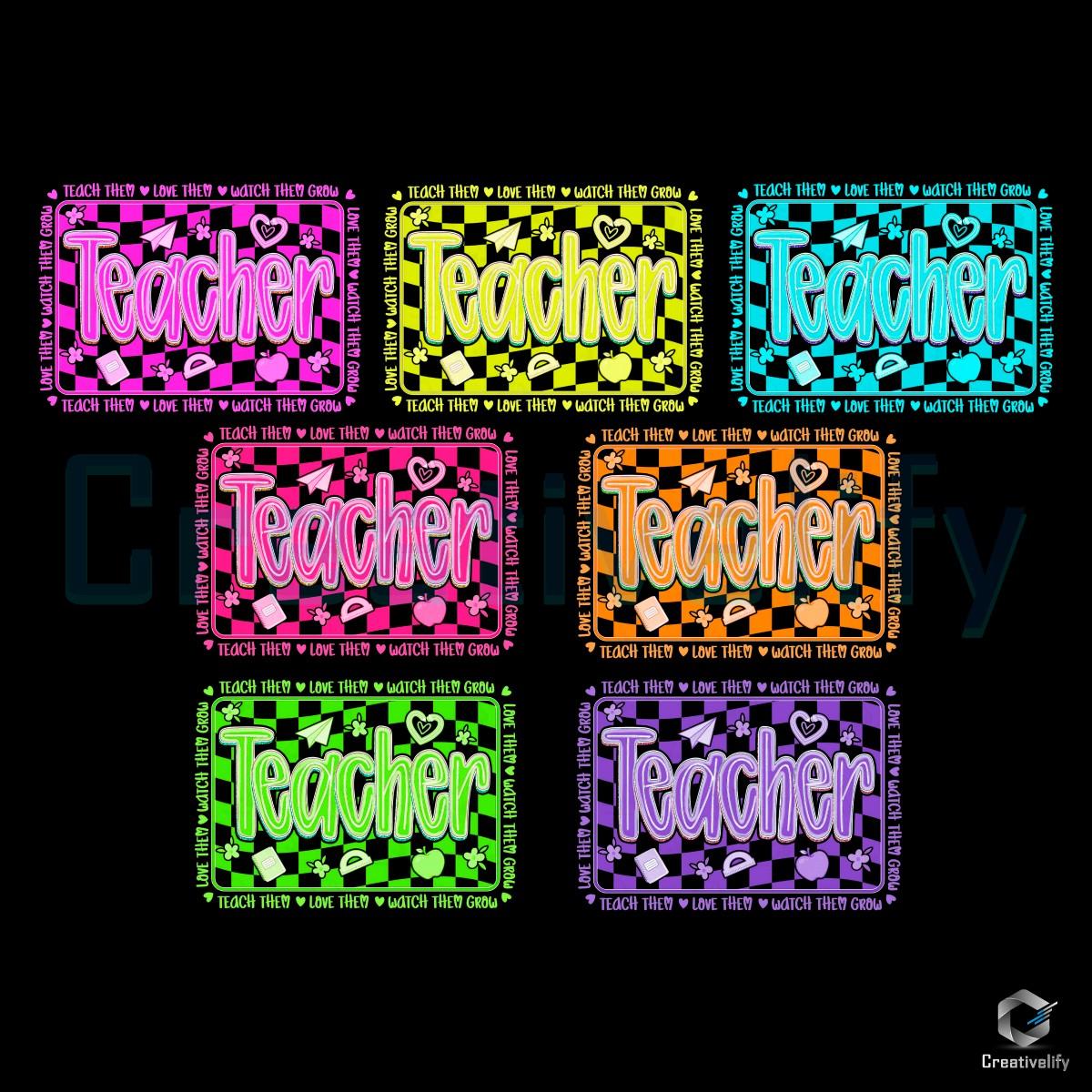 Digital Download Details for Retro Colorful Checkered Neon Teacher Groovy Png: Unleash Your Creativity